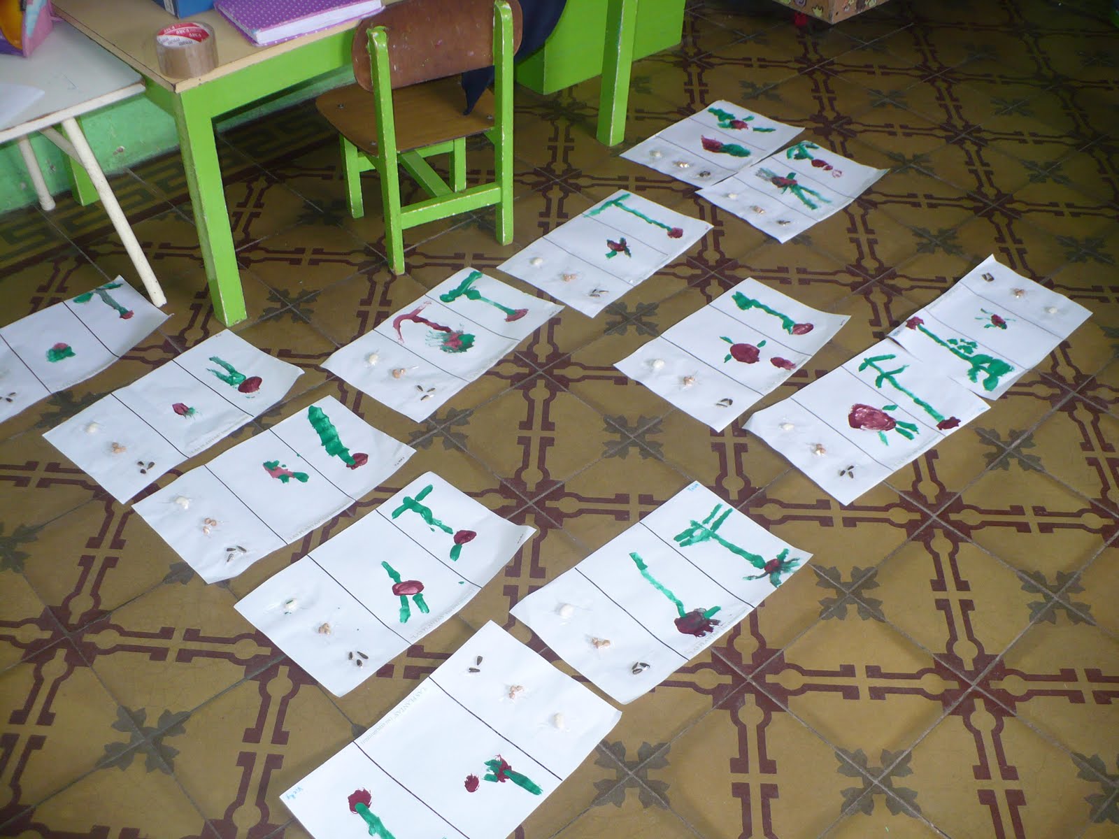 En el jardín hicimos germinadores con diferentes semillas. Pudimos observar cómo nacen y comienzan a crecer las plantitas. Los regamos todos los días y luego lo "documentamos" dibujando su crecimiento.